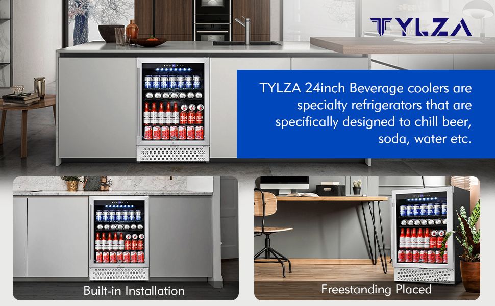 Home / 【Appliances】Tylza Beverage Refrigerator 24 Inch, 190 Can Built-in/Freestanding Beverage Cooler Fridge